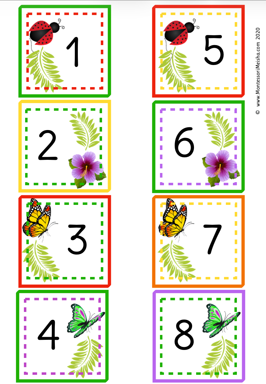 • Number date cards with butterfly and ladybug illustrations