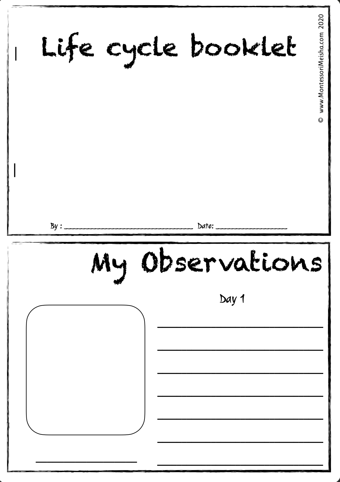 - Blank booklet template with an empty title page for children to create their own life cycle observation booklet for any animal or organism of their choosing