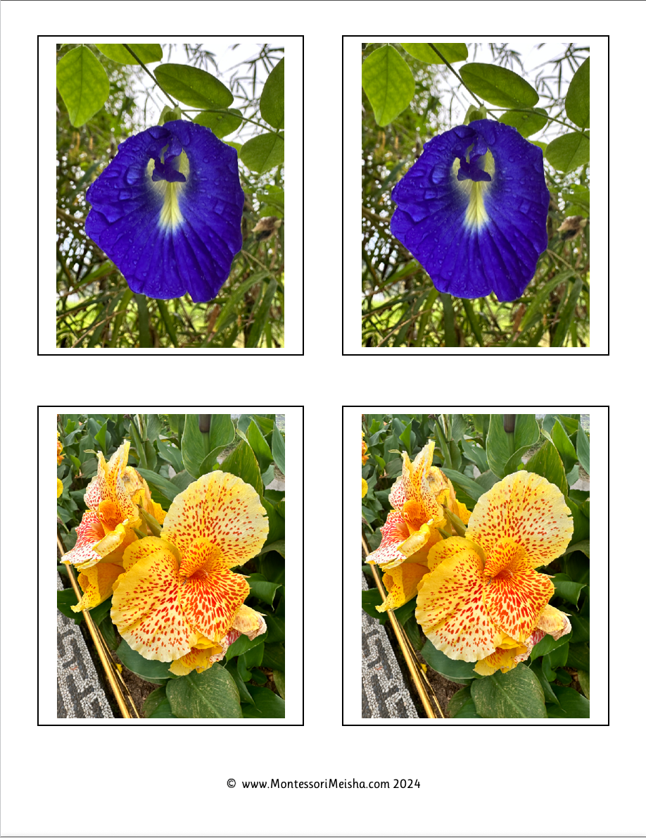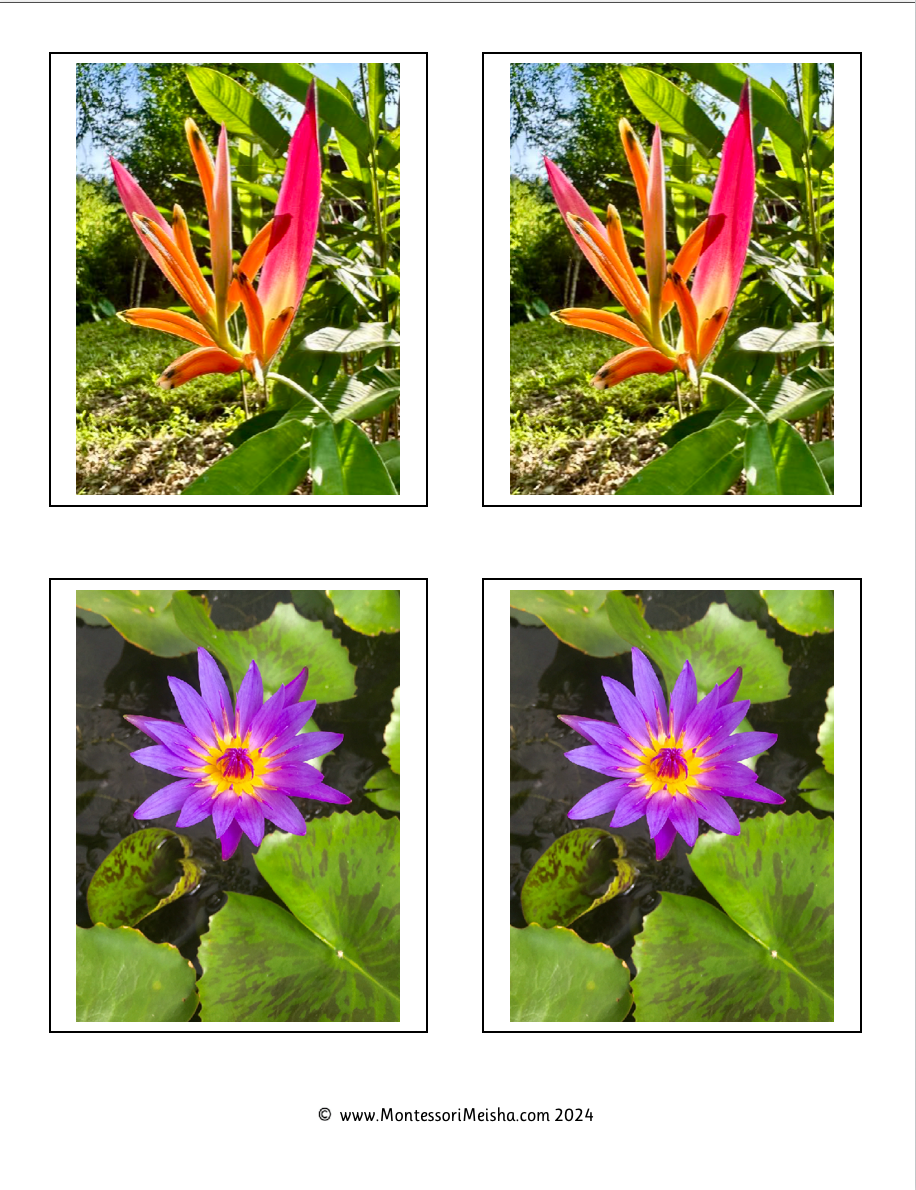 How to use: Children find the matching pair for each flower photograph, developing careful visual observation and the language to describe what they see. A wonderful pre-reading activity that also doubles as an introduction to the extraordinary diversity of tropical plant life. Works beautifully alongside the Parts of a Flower nomenclature cards also available in this store.