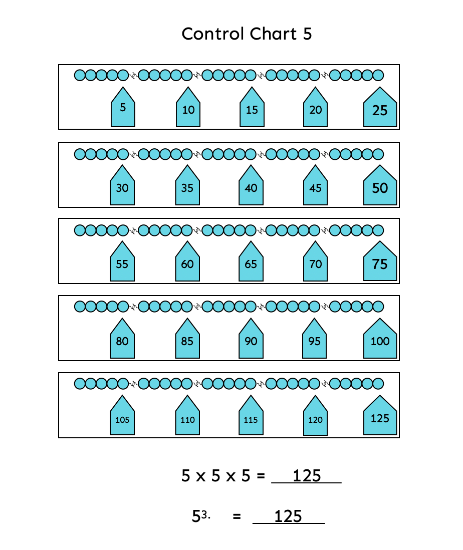 • Five chain worksheet for skip counting and recording multiples of 5 up to 125 (5 cubed)