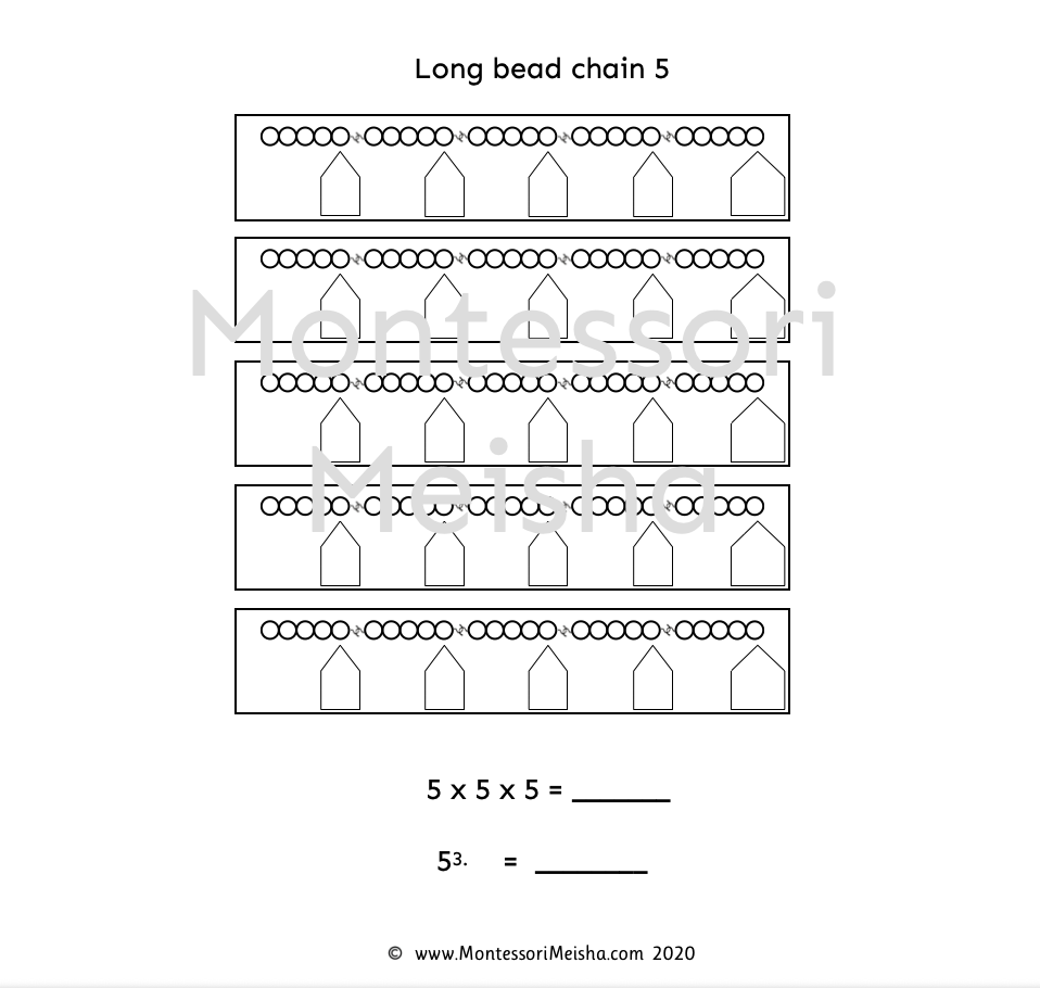 Montessori Long Bead Chain 5 Worksheet