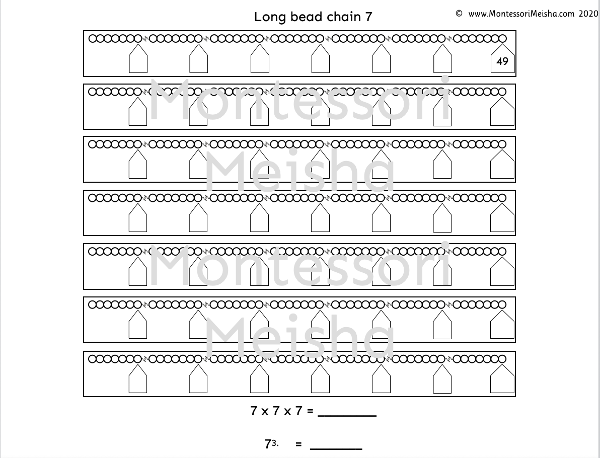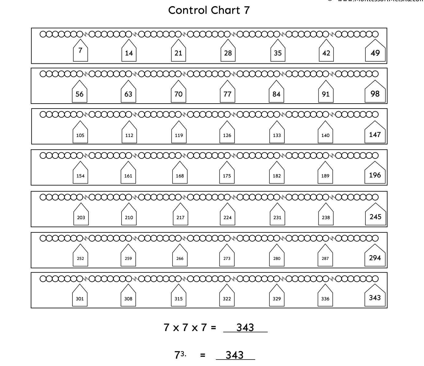 - Seven chain worksheet for skip counting and recording multiples of 7 up to 343 (7 cubed)