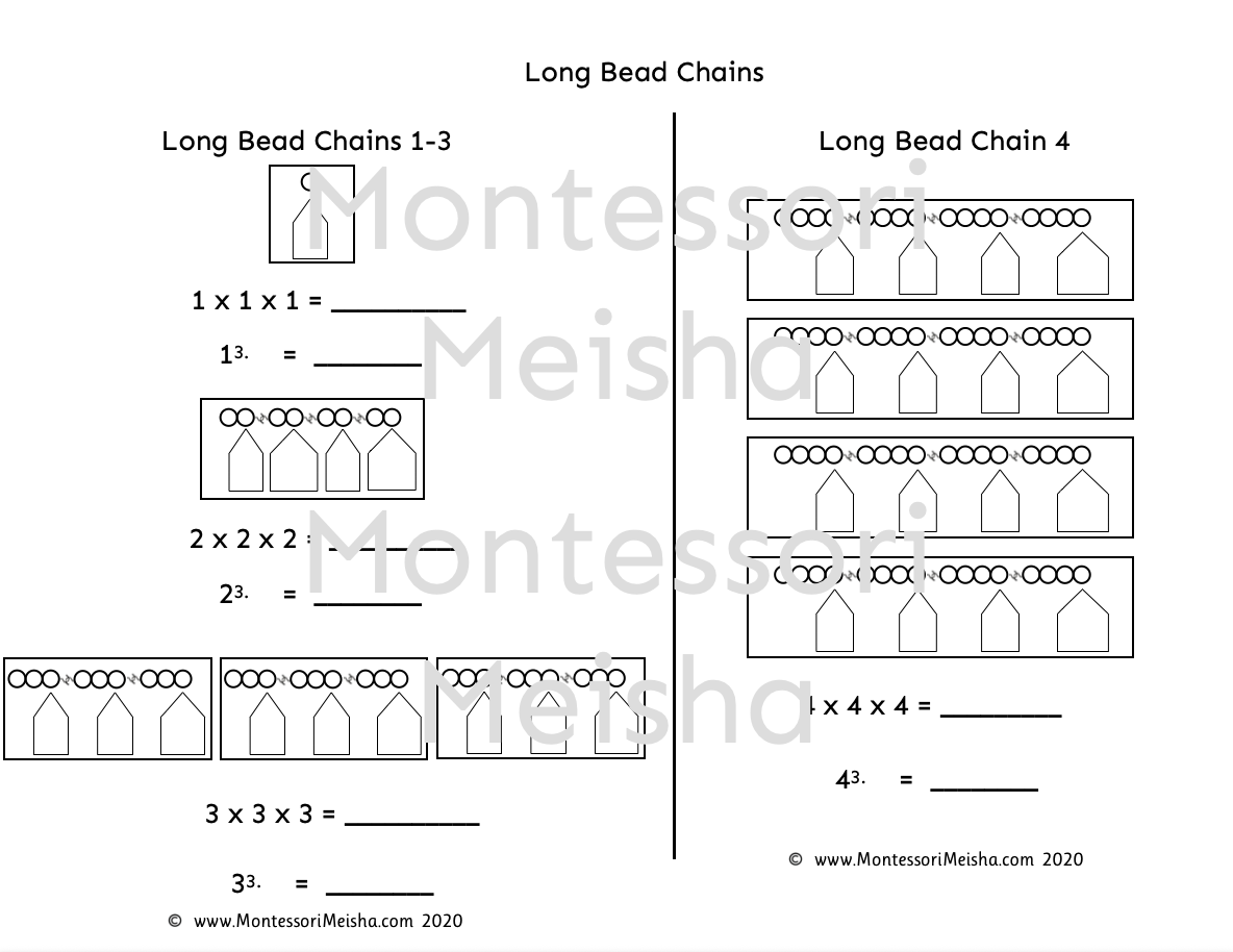 • Long bead chain worksheets for chains 1, 2, 3 and 4