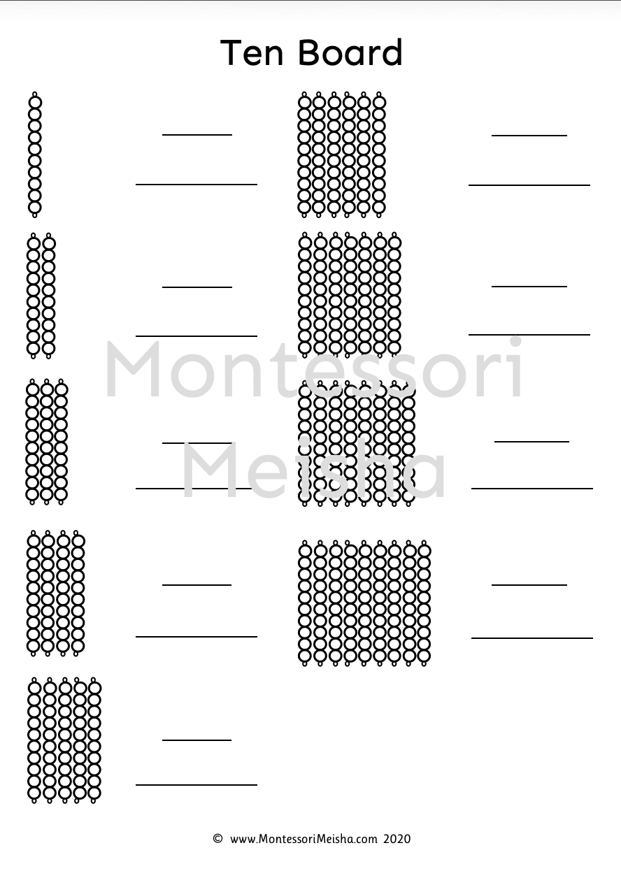 Montessori Ten Board Worksheet