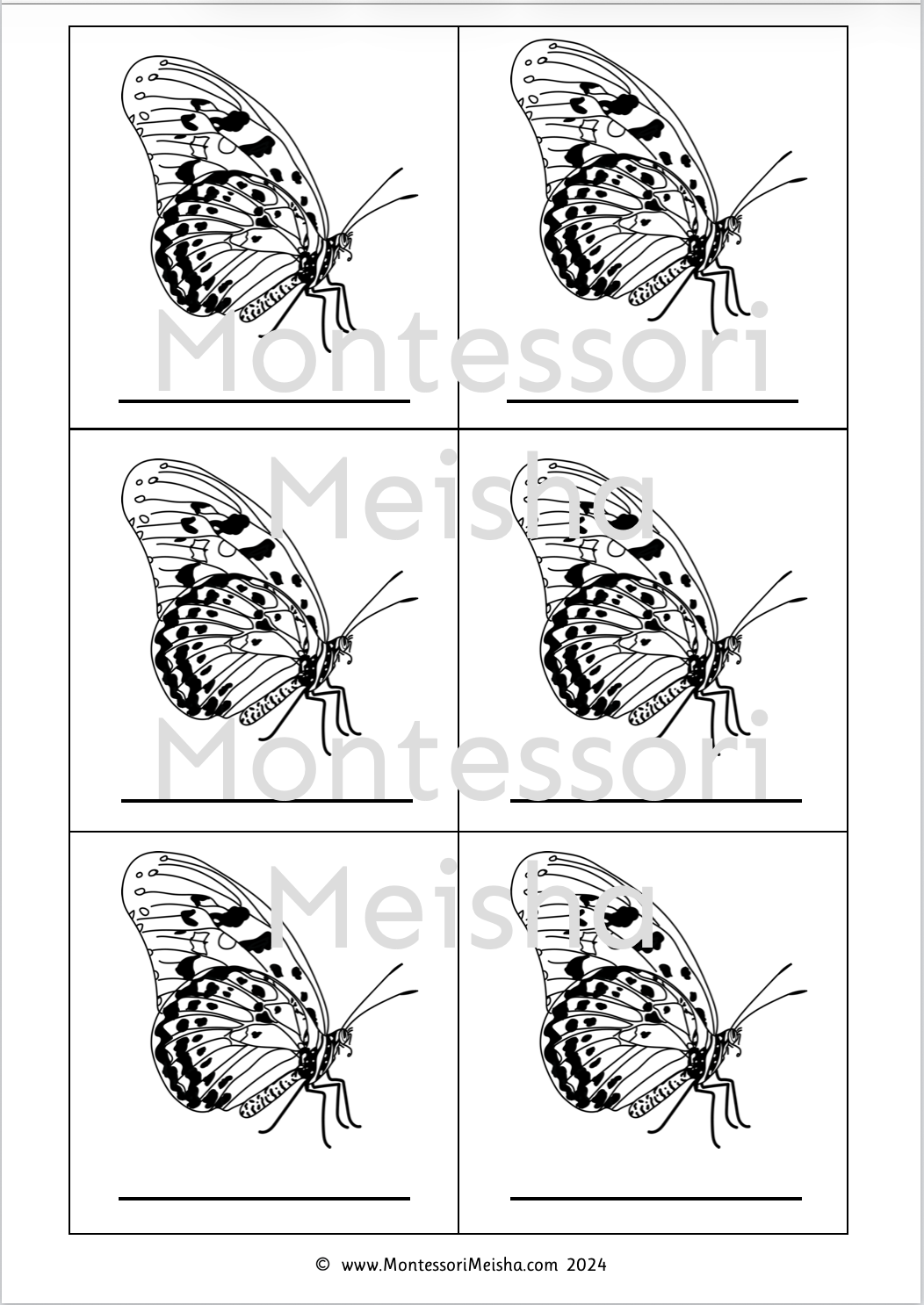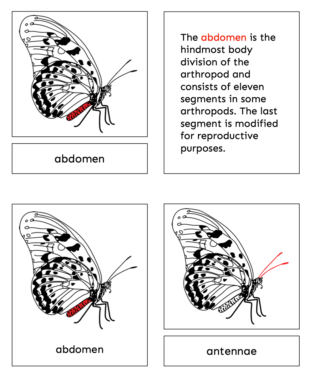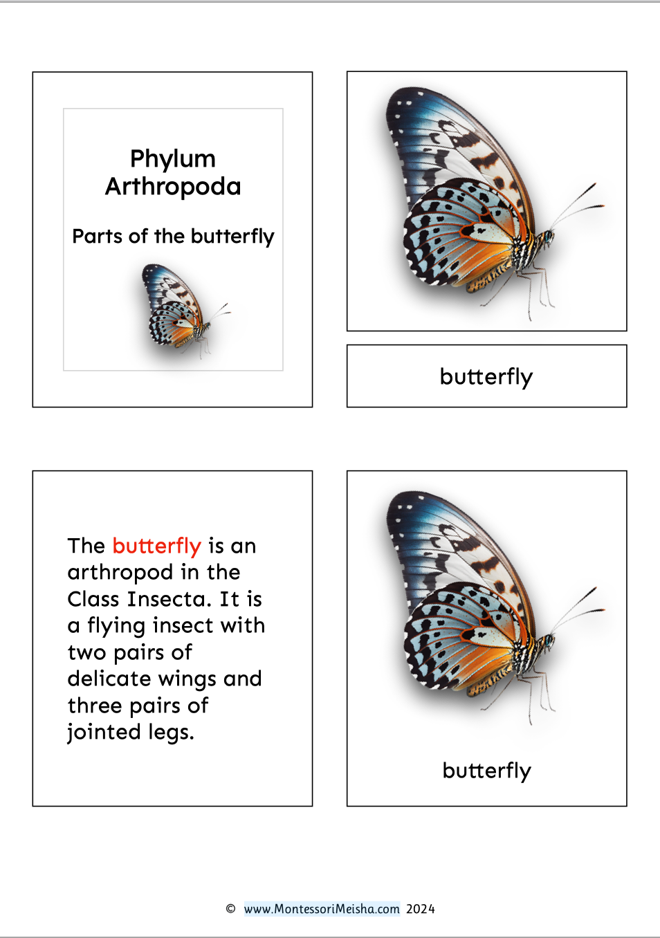 These printable Montessori nomenclature cards introduce children to the parts of the Butterfly through a real photograph cover card and detailed scientific illustrations, paired with child-friendly descriptions.