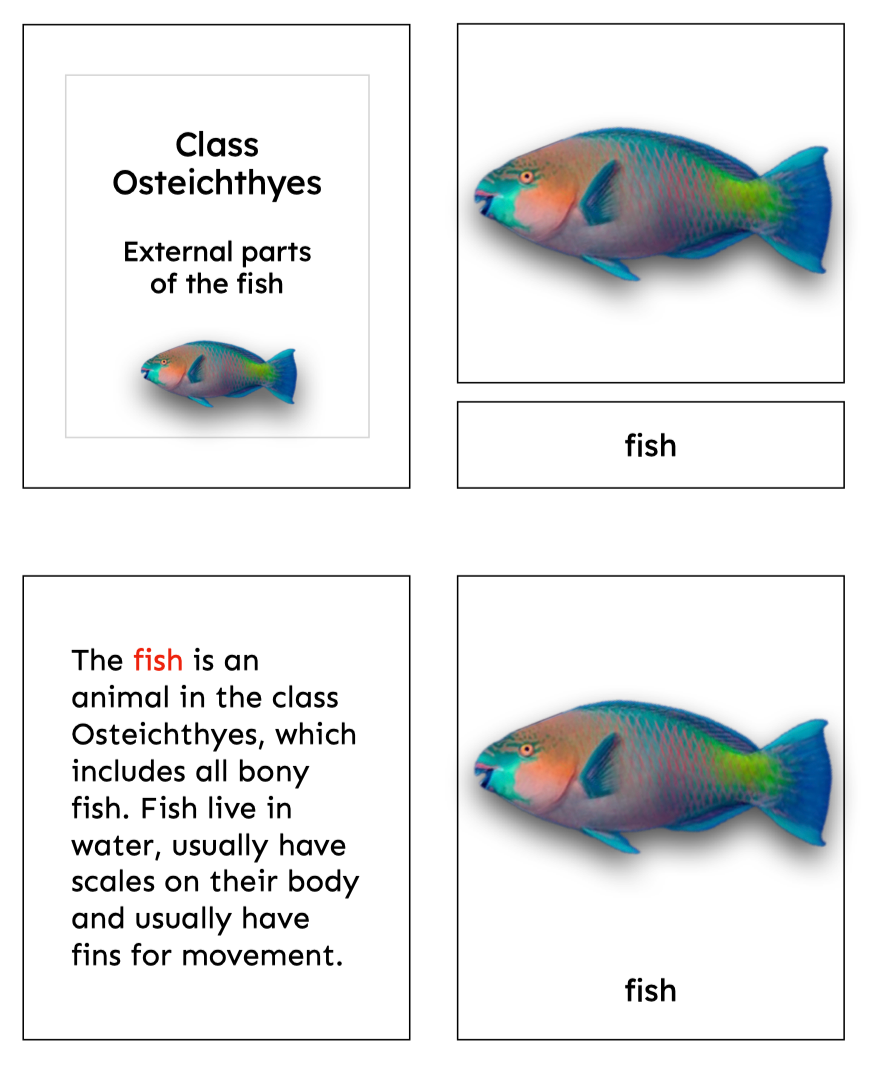 These printable Montessori nomenclature cards introduce children to the parts of the fish through a real photograph cover card and detailed scientific illustrations, paired with child-friendly descriptions.