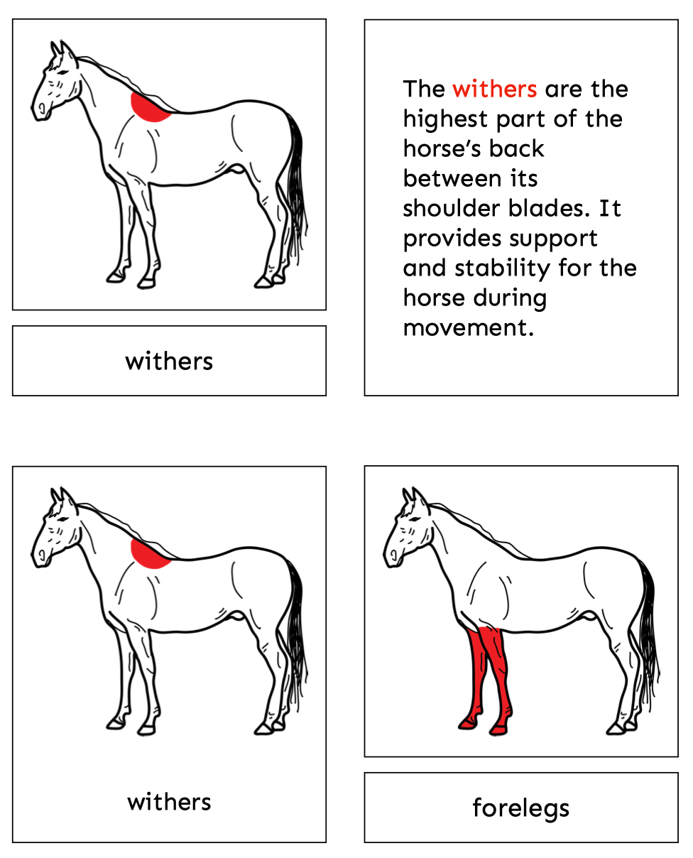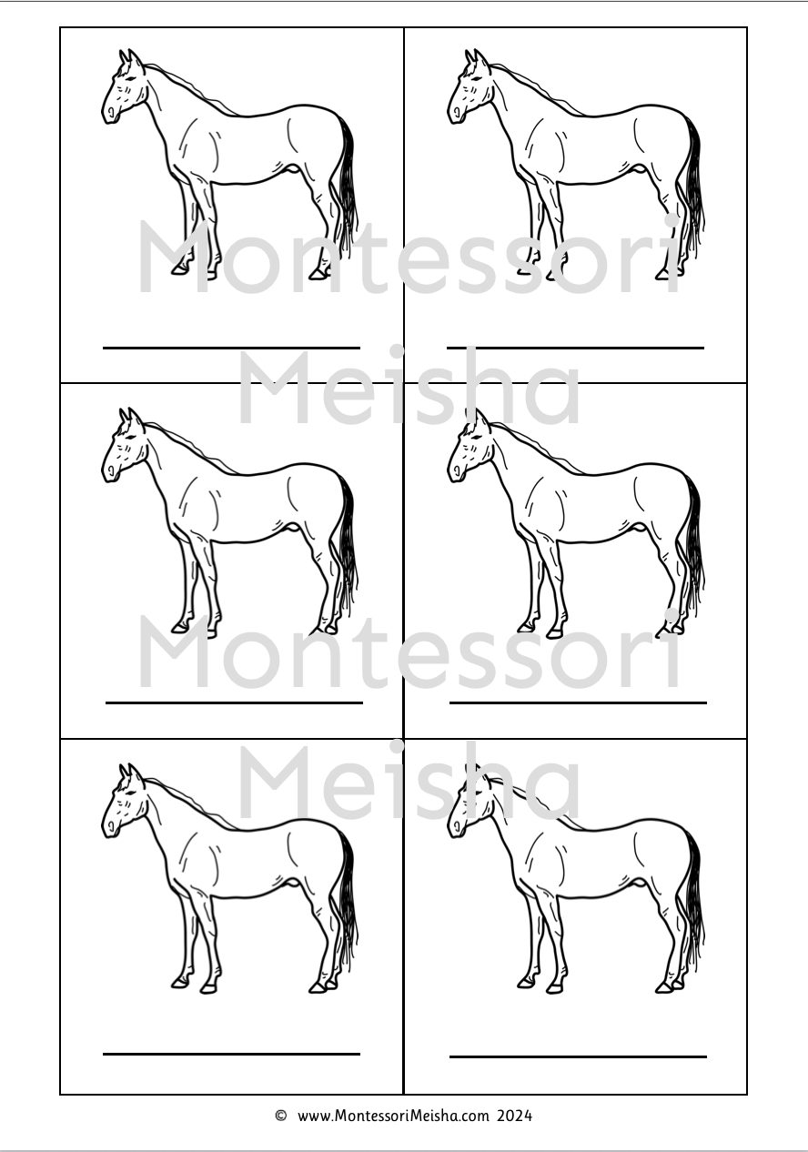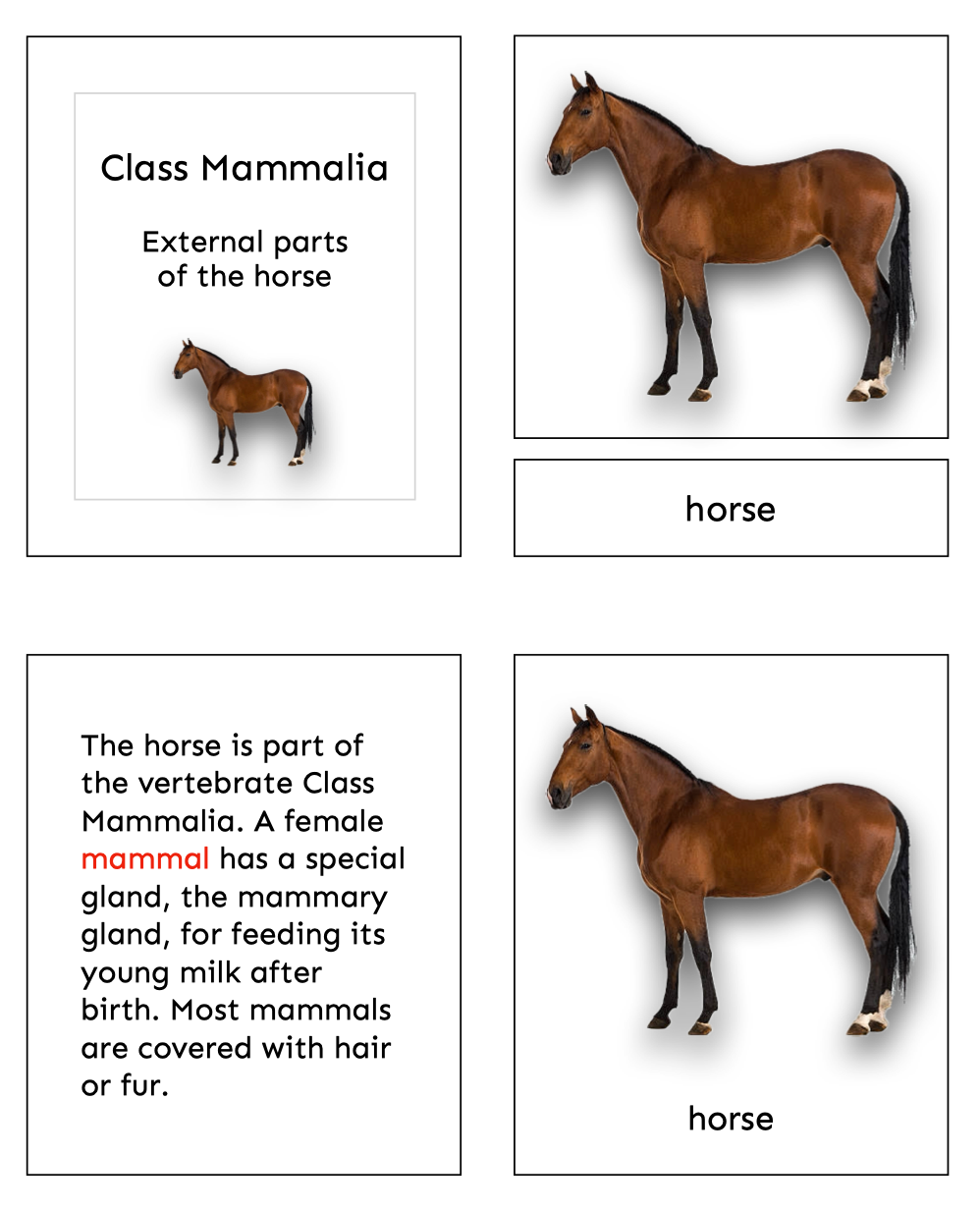 These printable Montessori nomenclature cards introduce children to the parts of the horse through a real photograph cover card and detailed scientific illustrations, paired with child-friendly descriptions.
