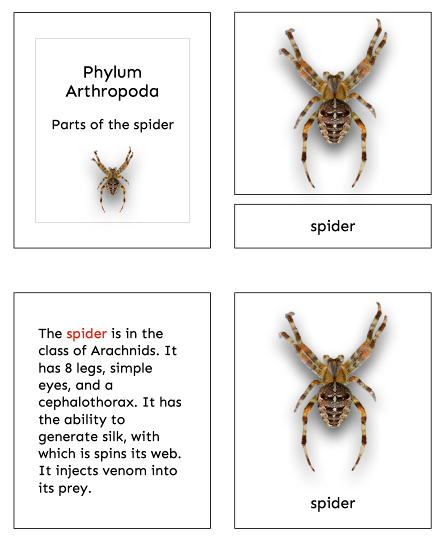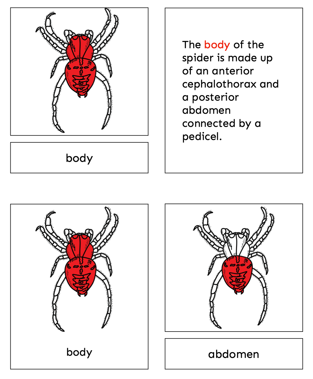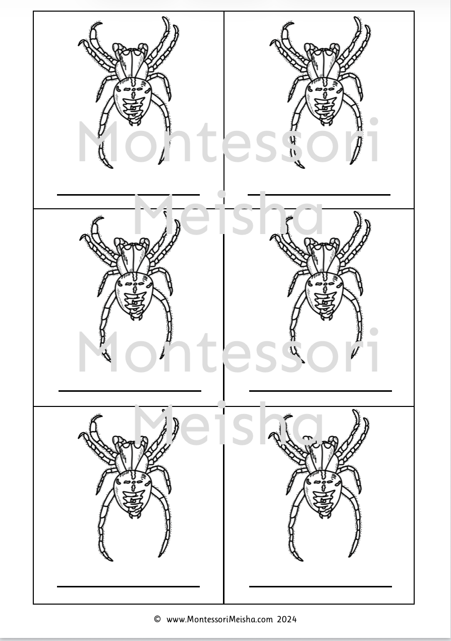 These printable Montessori nomenclature cards introduce children to the parts of the spider through a real photograph cover card and detailed scientific illustrations, paired with child-friendly descriptions.