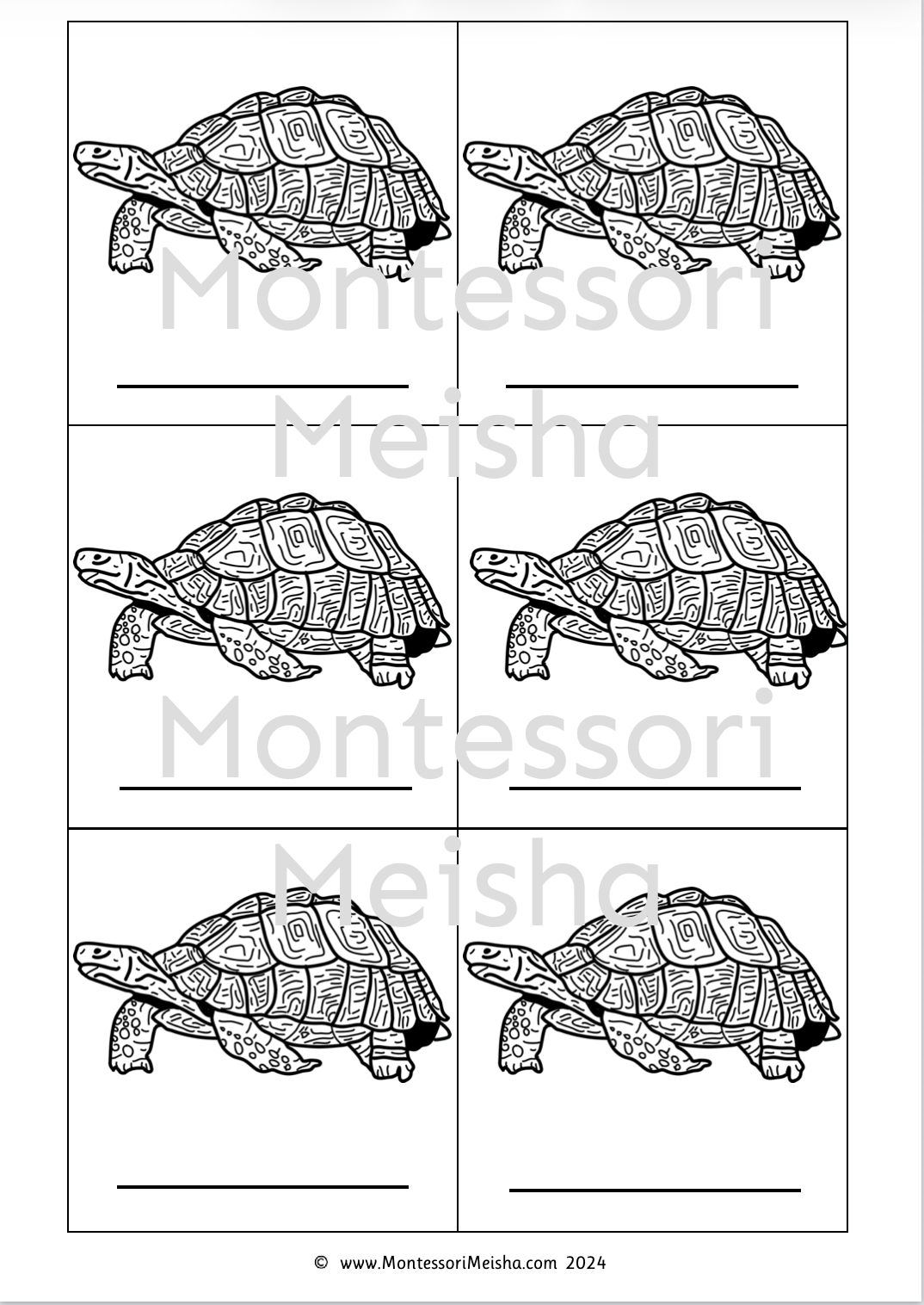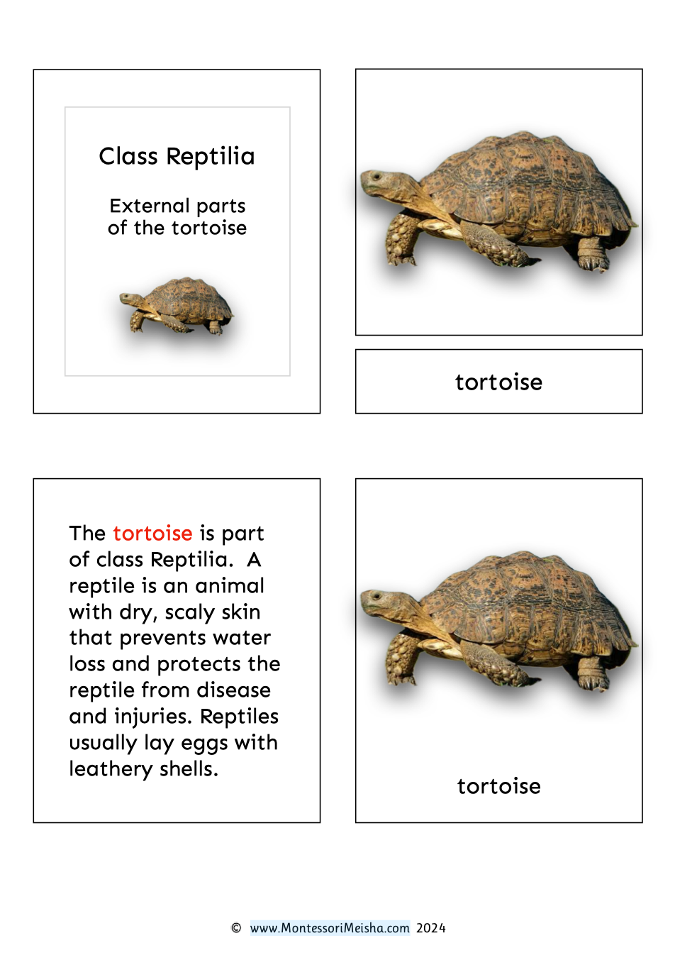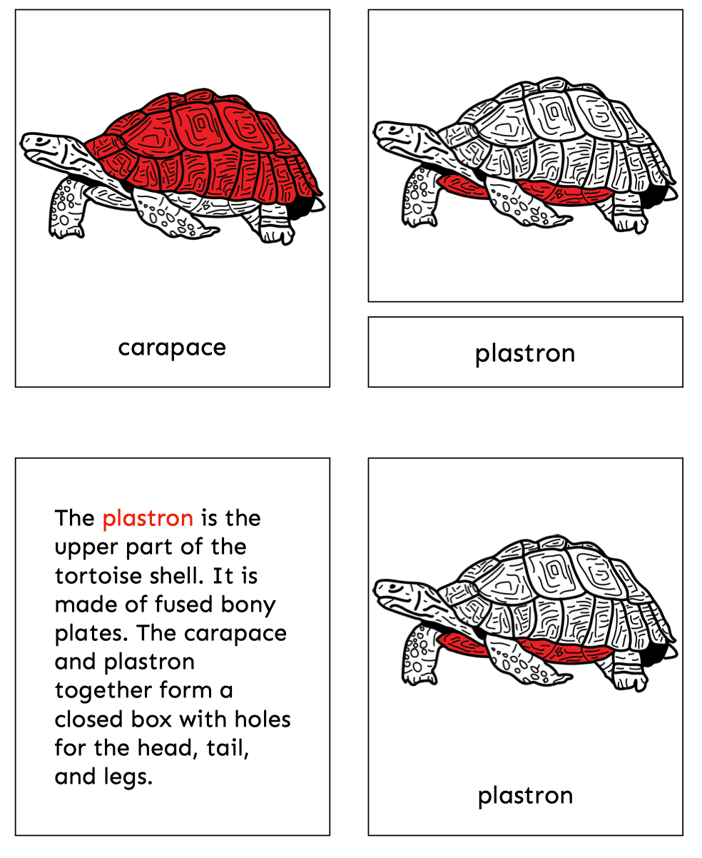 These printable Montessori nomenclature cards introduce children to the parts of the tortoise through a real photograph cover card and detailed scientific illustrations, paired with child-friendly descriptions.