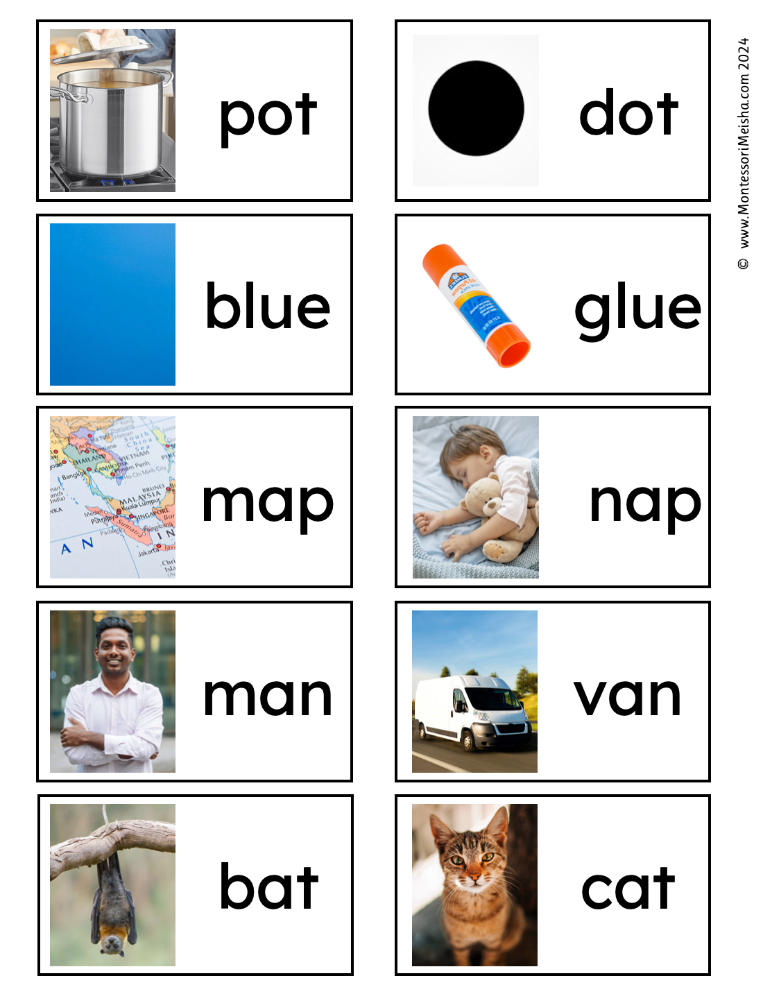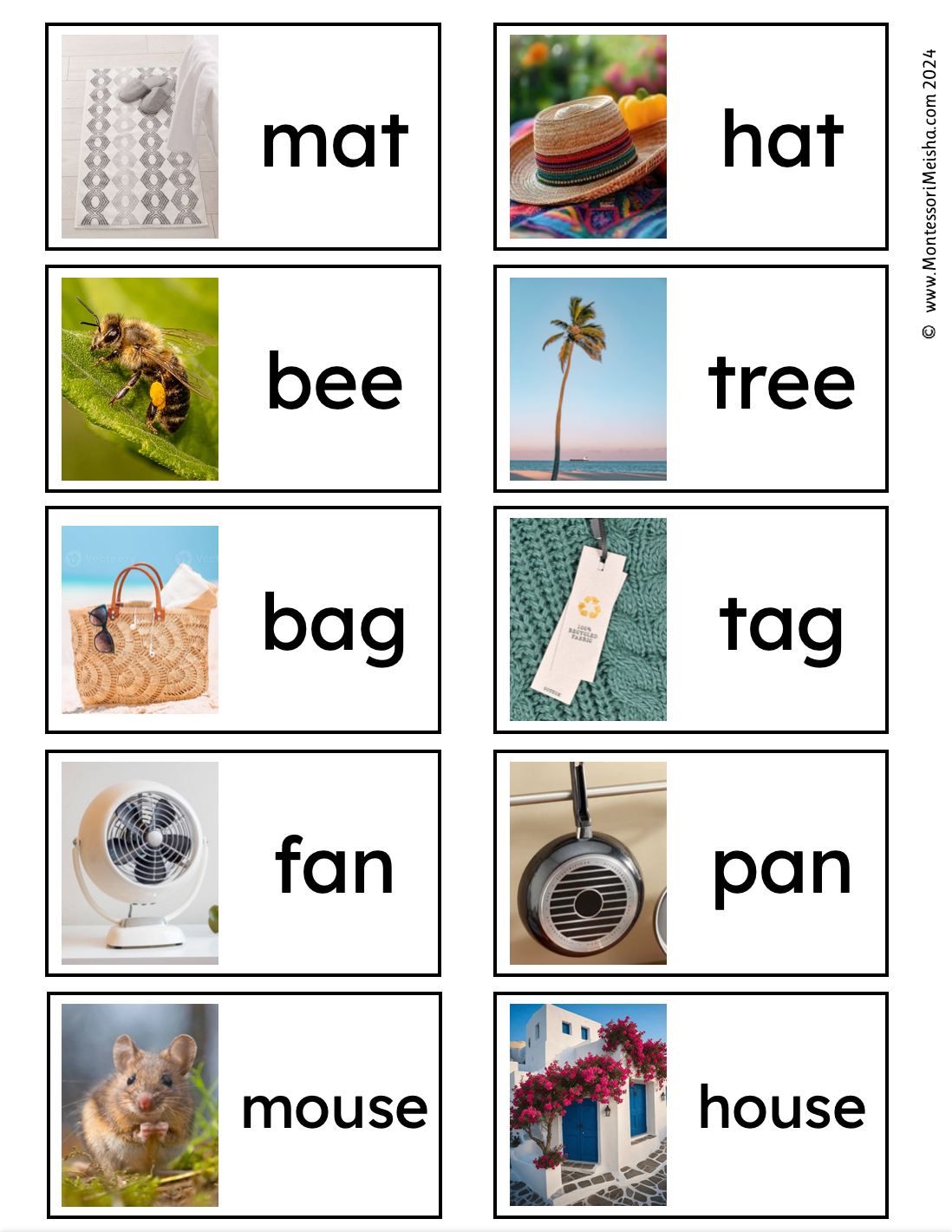 - Each card features a real photograph and the corresponding word