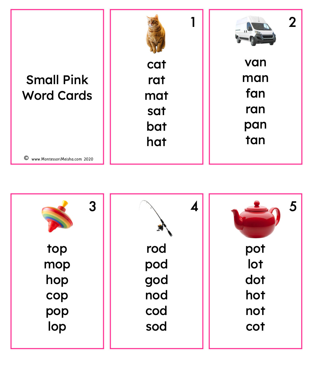 Ready to support your early readers with hands-on phonics practice? These printable Montessori pink series word cards give children a concrete, self-directed way to build reading and spelling confidence with CVC words.